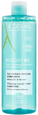 Esta Água Micelar de Limpeza Purificante com ingredientes 100% de origem natural, limpa a pele sem a secar e remove suavemente a maquilhagem. Este cuidado diário é eficaz para pré-adolescentes, adolescentes e adultos, e purifica a pele sem a secar. Elimina as impurezas, fecha os poros e ajuda a equilibrar o microbioma. A pele fica limpa, purificada, sem impurezas e a maquilhagem é removida. Com o seu PH fisiológico e a sua fórmula antipoluição, que protege a barreira cutânea, Biology AC água micelar deixa a pele com uma sensação de limpeza e frescura. Esta Água Micelar com um perfume suave à base de plantas contém Extrato de Seiva de Aveia Rhealba® BIO, proveniente de agricultura biológica.