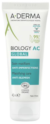 Eficaz nas marcas, desobstrui os poros e matifica a pele. Com um acabamento mate, não-pegajoso, não-gorduroso e uma leve fragrância vegetal, BIOLOGY AC GLOBAL pode ser aplicado de manhã e/ou à noite no rosto e/ou costas. Testado em associação com os principais tratamentos tópicos e orais para pele oleosa com tendência acneica, este cuidado é adequado para pré-adolescentes, adolescentes e adultos, e pode ser usado como uma boa base de maquilhagem. A sua fórmula com 99% de ingredientes de origem natural contém Seiva de Aveia Rhealba® BIO proveniente de agricultura biológica e protege a barreira cutânea da poluição.