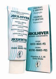 Use o cupão BEM-VINDO na primeira compra = 10% de desconto + oferta de portes Akilhiver assegura a regeneração cutânea e reforça a resistência da pele ao frio e humidade, hidratando e minimizando as sensações de desconforto. Garante a proteção da pele sensibilizada pela lavagem e desinfeção frequentes. Elevada eficácia em frieiras e gretas.