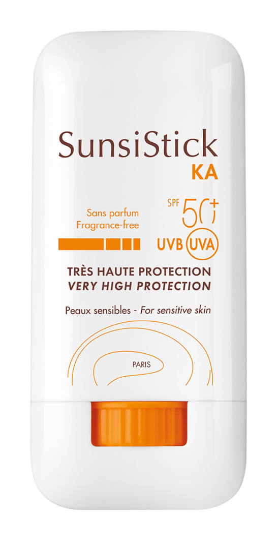 O SunsiStick KA SPF 50+ oferece uma proteção solar diária muito elevada para a pele sensível em risco e com tendência a queratoses actínicas. O SunsiStick KA SPF 50+ pode ser usado em zonas localizadas da testa, nariz, maçãs do rosto, crânio, costas das mãos... Uma fórmula com acabamento transparente que é muito fácil de aplicar, mesmo nas zonas mais sensíveis. A sua tolerância cutânea muito elevada foi demonstrada e avaliada sob controlo dermatológico. Efeito duradouro.
