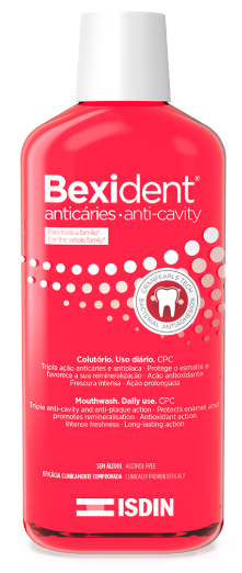 Graças à tecnologia Cranpearls Tech®, uma inovadora combinação de fluoreto de sódio e extrato de arando vermelho, Bexident® ANTICÁRIES proporciona uma tripla ação anticáries e ajuda a evitar a colonização de bactérias. Desta forma, evita a formação de biofilme, protegendo os dentes e as gengivas. O extrato de arando vermelho, ingrediente natural que contém proantocianidinas, demonstrou em vários estudos ter um efeito antiadesivo, protetor contra a proliferação bacteriana e antioxidante, contribuindo para inibir a formação de placa bacteriana e manter o pH da cavidade oral.