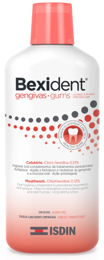Colutório preferencialmente recomendado para o cuidado complementar de higiene oral das gengivas frágeis sob tratamento dentário ou quando submetidas a colocação de implante, cirurgia periodontal ou maxilofacial.