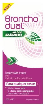 Bronchodual Alívio Rápido 200ml, xarope para a tosse seca ou com expetoração, associada à constipação.