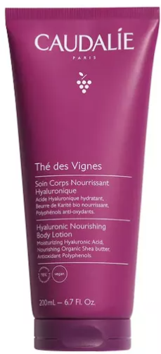 O Cuidado Corporal Nutritivo Hialurónico Thé des Vignes hidrata e nutre instantaneamente, para uma pele visivelmente mais suave, elástica e luminosa. A sua textura fresca e leve penetra rapidamente sem efeito oleoso. Deixa a pele delicadamente perfumada pela icónica fragrância Thé des Vignes, com notas de almíscar branco, néroli e gengibre.