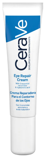 Desenvolvido com dermatologistas, 3 ceramidas essenciais e a exclusiva tecnologia MVE de hidratação encapsulada com libertação controlada e contínua de ingredientes ativos, o Creme Reparador de Contorno dos Olhos, para todos os tipos de pele, é formulado com Niacinamida, Ácido Hialurónico, Extrato de Algas Marinhas, Glicerina e Fitoesfingosina para ajudar a apaziguar e hidratar a pele do contorno dos olhoas, ao mesmo tempo que reduz visivelmente os papos e a aparências das olheiras. Sem perfume, não comedogénico.