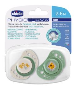 Chicco Chupeta PhysioForma Air Verde/Branco 2-6 Meses x2