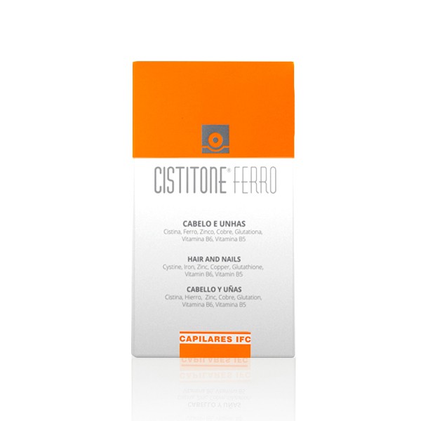 Use o cupão BEM-VINDO na primeira compra = 10% de desconto + oferta de portes Suplemento Alimentar indicado na queda do cabelo de diversas origens, no homem e na mulher, em particular na relacionada com deficiências em ferro: história de anemia, menstruações intensas. Recomendado ainda no pós-parto, menopausa, dietas drásticas, agressões externas (stress oxidativo) e quando existe fragilidade capilar e/ou ungueal.