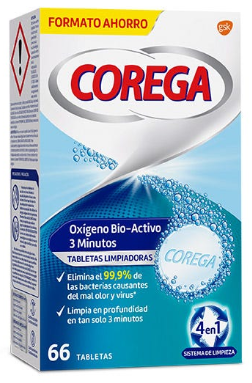 Se pretender uma limpeza em profundidade, mas preferir não deixar a sua prótese mergulhada em água durante a noite, Corega Oxigénio Bio-Ativo é o produto ideal para si. O sistema de limpeza 4 em 1 da Corega 4 em 1 (Acelerador, Branqueador, Agente de Limpeza e Agente Antibacteriano) atua em conjunto para eliminar 99,9% das bactérias que causam o mau hálito em apenas 3 minutos.Quando utilizado como indicado, ajuda a eliminar manchas difíceis e a reduzir a placa bacteriana, garantindo-lhe uma prótese mais limpa e fresca, para que possa aproximar-se sem constrangimento das pessoas de que mais gosta.Ao contrário de algumas pastas de dentes normais, as pastilhas Corega têm uma fórmula não abrasiva, por isso limpam de uma forma mais suave do que as pastas de dentes normais e deixam menos locais para bactérias indesejáveis e outros micro-organismos se desenvolverem.Corega Oxigénio Bio-Ativo não se destina apenas as utilizadores de próteses.