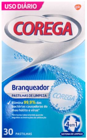 Quando emerge as próteses durante a noite, Corega não só elimina 99,9% das bactérias que causam o mau hálito, como também remove manchas difíceis e a acumulação da placa bacteriana, ajudando a manter a cor original das suas próteses, quando usado como indicado.