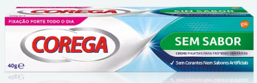 Corega Sem Sabor é um creme fixativo que proporciona uma fixação forte todo o dia.