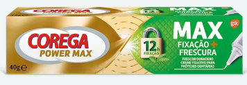 Corega MAX FIXAÇÃO + FRESCURA confere uma fixação até 12 horas, com benefício adicional de frescura duradoura na boca. Contém infusão de óleos de hortelã-pimenta, menta e manjericão natural que ajuda a proporcionar uma sensação de frescura duradoura.