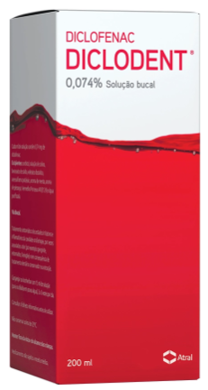 Diclodent 0,074% Solução bucal contém como substância ativa o diclofenac, que pertence a uma classe de medicamentos denominado anti-inflamatórios não esteroides. Este medicamento é indicado no tratamento sintomático dos estados irritativos e inflamatórios da cavidade orofaríngea, por vezes associados a dor (por exemplo, gengivite, estomatite, faringite) e em consequência de tratamento dentário para cuidado ou extração de dentes.