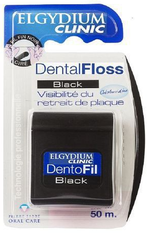 O ELGYDIUM CLINIC FIO DENTÁRIO BLACK é um fio dentário fino encerado, sem aroma e impregnado em clorohexidina. A sua cor preta facilita a visualização da placa bacteriana removida.