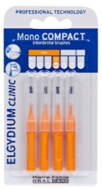 Concebidos para uma limpeza interdental eficaz, os escovilhões ELGYDIUM CLINIC Mono Compact completam as rotinas diárias de higiene oral e são particularmente recomendados para pessoas com implantes, aparelho ou colos de dentes expostos. A sua utilização reduz a acumulação de placa bacteriana, responsável pelas cáries dentárias e doenças gengivais. Insira cuidadosamente o escovilhão e escove para a frente e para trás. As cerdas pretas do escovilhão contrastam bem com o branco natural dos dentes para facilitar a inserção e a visualização dos depósitos à medida que são removidos. As cerdas brancas, por outro lado, permitem ver qualquer hemorragia ocasional. Depois da utilização, basta limpar o escovilhão ELGYDIUM CLINIC (com uma pequena quantidade de colutório, por exemplo) e armazená-lo para usar no futuro. Escolher o escovilhão do tamanho certo é importante para evitar inserir o escovilhão com demasiada força. Assim, a gama é composta por 7 tamanhos que vão do mais fino (ISO 0) ao mais grosso (ISO 6), identificáveis pelas suas cores diferentes e disponíveis em embalagens de 4.