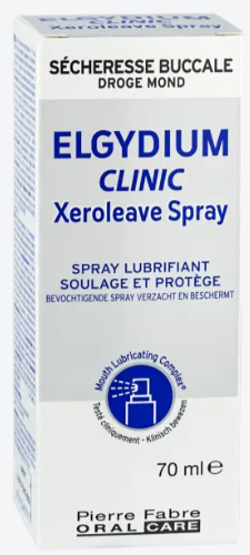 A falta ou ausência de saliva (chamada de hipossialia ou xerostomia), uma sensação de sede constante e dificuldade em mastigar e engolir são todas consequências desconfortáveis de ter a boca seca. ELGYDIUM Clinic Xeroleave Spray, uma solução para a boca seca e um complexo de ingredientes ativos patenteados (o Complexo Lubrificante Bucal), oferece lubrificação imediata à mucosa oral e alívio duradouro durante cerca de 90 minutos após cada utilização. Com um sabor neutro e sem álcool, pode ser utilizado até 8 vezes por dia, conforme necessário, e aplicado com 3 simples pulverizações no interior das bochechas e na língua.