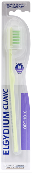 As pessoas que usam aparelho conhecem bem a dificuldade de cuidar dele de forma cuidadosa e minuciosa. A escova de dentes média ELGYDIUM Clinic Ortho X fornece a solução perfeita. A tecnologia patenteada do padrão de cerdas arredondadas em forma de X permite uma excelente escovagem de brackets do aparelho e zonas de difícil acesso. As suas cerdas externas cruzadas limpam as zonas de difícil acesso enquanto as cerdas centrais facilitam a limpeza de brackets do aparelho ou próteses. Para garantir que a escova de dentes ortodôntica ELGYDIUM Clinic fica totalmente esterilizada, basta colocá-la no micro-ondas a 600 W e esperar apenas 60 segundos.