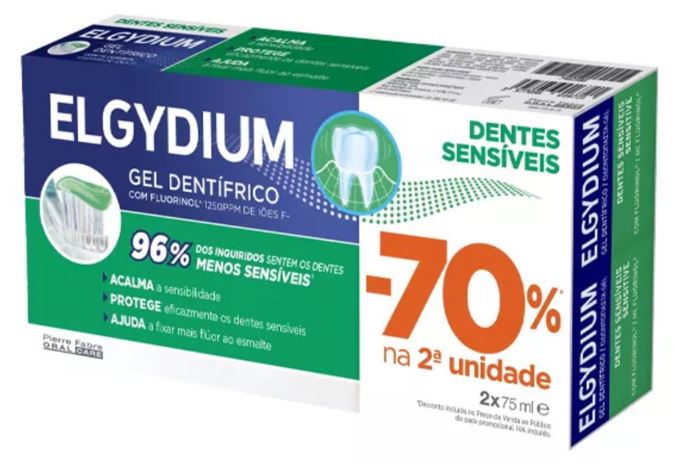 Privar-se de bebidas geladas, evitar o seu prato preferido por recear que a temperatura quente possa provocar dor, sentir uma dor aguda ao ingerir alimentos açucarados ou ácidos, etc. São vários os inconvenientes que afetam a qualidade de vida. O gel dentífrico ELGYDIUM Dentes Sensíveis ajuda a reduzir a hipersensibilidade dentinária. Suave e não abrasivo, cuida da superfície particularmente frágil dos dentes sensíveis protegendo-os em simultâneo das cáries com Fluorinol®. Este gel dentífrico para dentes sensíveis penetra nos espaços interdentários, nas fissuras e na margem da gengiva, para uma eficácia total. A fórmula em gel proporciona maior conforto na escovagem após cada refeição. Adequado para adultos e crianças a partir dos 12 anos.