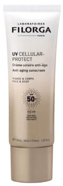 Cuidado solar de proteção muito elevada SPF50+, enriquecido com 8% de ingredientes antienvelhecimento para corrigir rugas, hiperpigmentações, perda de firmeza e desidratação.