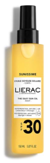 Durante a exposição, o Óleo Solar Sedoso Corpo SPF30 oferece uma proteção elevada graças ao seu sistema de filtros de amplo espetro que associa filtros orgânicos a um complexo de ingredientes ativos que combatem a luz azul e os raios infravermelhos.
