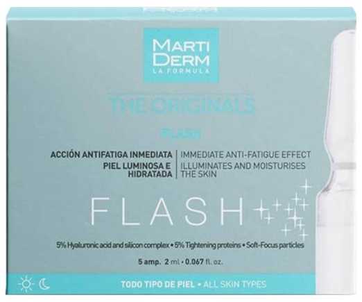 A ampola Flash é uma fórmula criada para obter um efeito lifting e antifadiga imediato, e para exibir uma pele mais hidratada e luminosa.