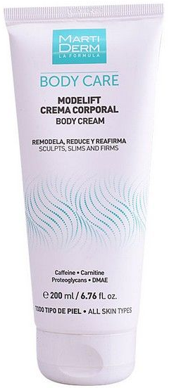 Modelift é um creme corporal hidratante, remodelador, redutor, refirmante e anti-idade para o tratamento intensivo de zonas específicas como braços, coxas e abdómen. A combinação entre o silício e o DMAE converte este creme redutor de gordura localizada e refirmante no melhor tratamento para potenciar a firmeza e combater a flacidez da pele.