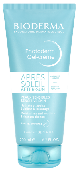 Photoderm Après soleil gel-creme é enriquecido com agentes emolientes e calmantes. Reidrata a pele de forma duradoura, acalma a sensação de sobreaquecimento após a exposição e prolonga o bronzeado natural.