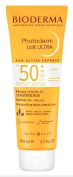 Photoderm Lait ULTRA SPF50+ é o resultado das últimas pesquisas dos Laboratórios Bioderma. Foi concebido para proporcionar uma proteção muito elevada, reforçada contra os raios UVA para todas as peles sensíveis, mesmo as mais vulneráveis.