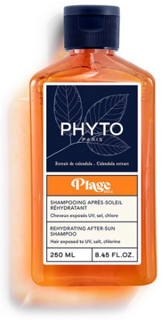 O champô Phyto PLAGE reidrata e repara os cabelos danificados pelo sol, mar ou piscina. A sua espuma cremosa limpa suavemente e elimina os resíduos de proteção solar, sal, areia e cloro. O cabelo fica mais suave e leve. No centro da fórmula, o extrato de calêndula nutre e suaviza a fibra capilar. Graças ao extrato de malva branca, os cabelos ficam com mais brilho.