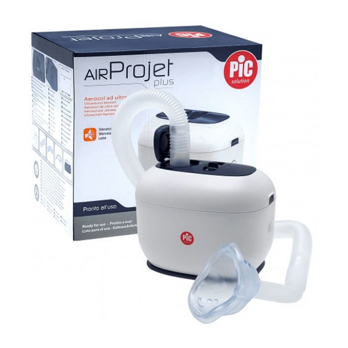 O AirProjet Plus vem com uma bolsa prática e resistente: para que possa transportá-lo em viagem, protegendo-o de impactos. Também encontrará uma ampla gama de acessórios: tubo de ligação, boquilha, forquilha nasal, uma máscara Air Soft 2 em 1, que se adapta facilmente à cara de adultos e dos seus filhos.