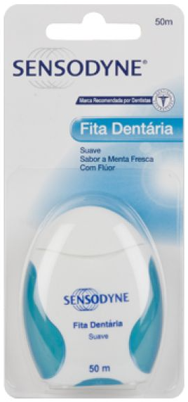 Fita em fibra suave, revestida à base de cera, com flúor de sódio (0,1% p/p, 450 ppm de Flúor).