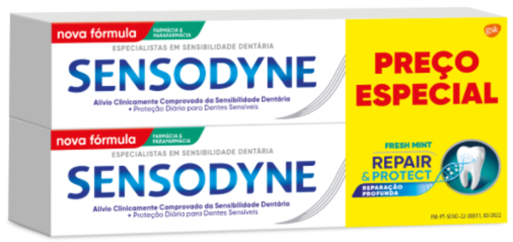 Sensodyne Repair & Protect Reparação Profunda, com a ajuda da tecnologia NovaMin, ajuda a reparar em profundidade o interior da dentina, ajudando a restaurar uma camada mineral protetora sobre a dentina exposta. Está clinicamente comprovado que Sensodyne Repair & Protect Reparação Profunda alivia a sensibilidade dentária, com escovagem duas vezes por dia, reparando em profundidade áreas sensíveis para que possa desfrutar da vida sem ter de se preocupar com a dor da sensibilidade dentária.