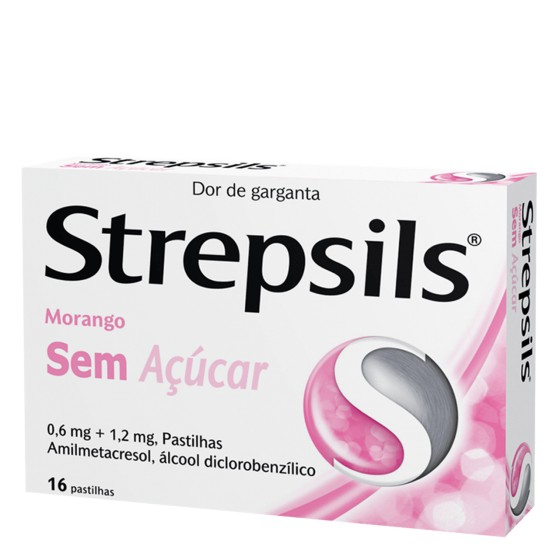 Strepsils Morango sem açúcar, 1,2/0,6 mg x 16 pst