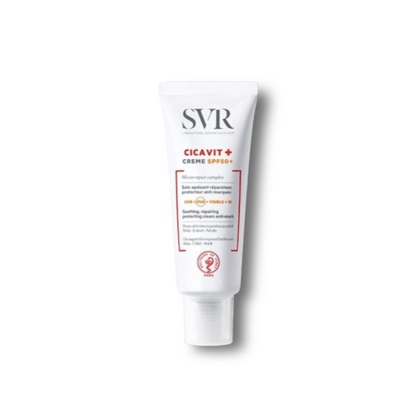 Formulado com filtros UVA/UVB e um complexo antioxidante que protege contra a luz visível e raios infravermelhos, Cicavit+ Crème SPF50 atua sobre todos os tipos de raios para limitar o risco de marcas vermelhas e castanhas.