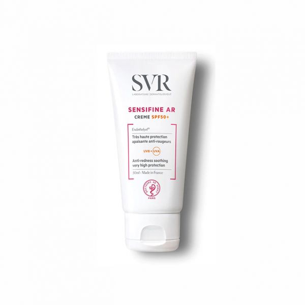 Nota que surge vermelhidão e pequenos vasos sanguíneos no seu rosto após a sua pele sensível ter sido exposta ao sol? Sensifine AR Creme SPF50+ combina uma proteção solar muito elevada com ativos suavizantes e anti-vermelhidão. Mesmo quando a pele é exposta ao sol, a vermelhidão e rubor são reduzidas.