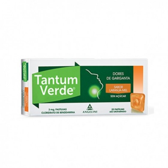 Tantum Verde Laranja-Mel Sem Açucar, 3 mg x 20 pst