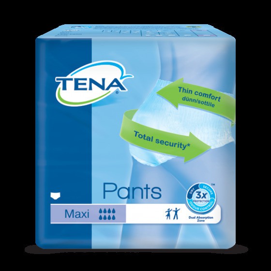 As cuecas TENA Pants Maxi são cuecas descartáveis para incontinência, suaves e confortáveis, para homens e mulheres, com ajuste tipo "pull up", tal como a roupa interior habitual. Com um ajuste adequado ao corpo e toque semelhante ao tecido, os materiais respiráveis foram concebidos para um conforto suave. Ao contrário das fraldas para adultos tradicionais, as cuecas TENA Pants Maxi, têm um núcleo com absorção máxima que afasta rápida e eficazmente o líquido para uma segurança total. Quando utilizadas, o formato do núcleo fino e flexível forma dois canais de absorção, também conhecidos como Zona de Absorção Dupla, que afastam a humidade do corpo para uma secura e proteção ótimas. As barreiras antifugas integradas providenciam uma segurança adicional. Proteção de confiança contra perdas, para um estilo de vida ativo e confiante, seja qual for a situação.