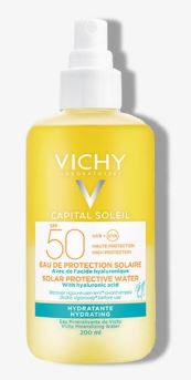 A Água Protetora Solar FPS 50 Hidratante Capital Soleil fornece uma elevada proteção UV com uma textura aquosa revolucionária.Fresca como a água e protetora, a sua fórmula hipoalergénica conta com uma inovadora tecnologia bifásica e ácido hialurónico para proporcionar 24horas de hidratação.A sua característica textura ultrassensorial, não oleosa e não pegajosa é totalmente invisível sobre a pele e é resistente à água e à transpiração.