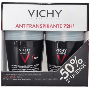 Desodorizante 72H Vichy Homme Extreme Control Antitranspirante proporciona um controlo duradouro do odor e do suor durante 72 horas, mesmo em caso de transpiração intensa. Testado sob controlo dermatológico, em pele sensível. Fórmula hipoalergénica. Sem álcool.