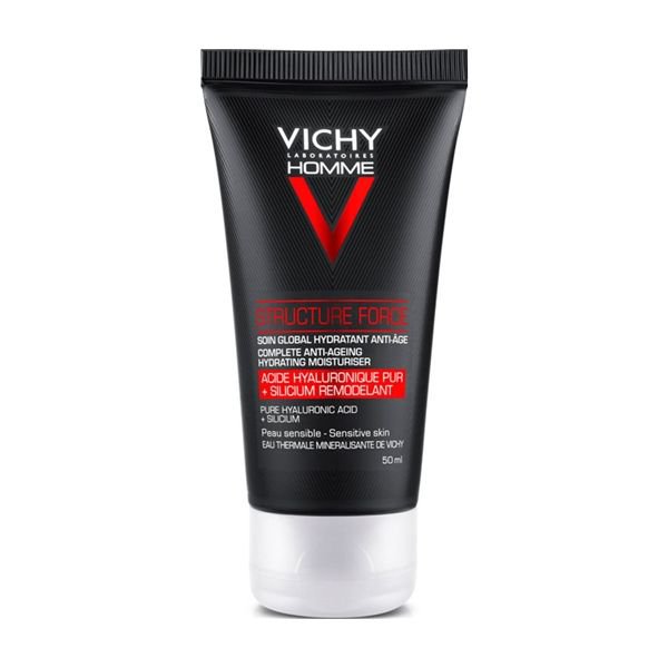 Use o cupão BEM-VINDO na primeira compra = 10% de desconto + oferta de portes Vichy Homme Structure Force é um cuidado de rosto anti-idade para homem que combate os principais sinais de envelhecimento: rugas, perda de firmeza e flacidez. Indicado para todos os tipos de pele, incluindo pele sensível. Adequado ao contorno dos olhos. Na sua fórmula contém: