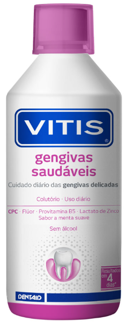 Vitis Gengival Colutório é um produto oral especificamente formulado para ajudar a controlar a gengivite. A sua utilização contínua ajuda a prevenir a inflamação e o sangramento das gengivas. Inibe a formação de biofilme oral (placa dentária) e reduz a sua acumulação na cavidade oral, ajudando, assim, a prevenir o aparecimento ou desenvolvimento de gengivite.