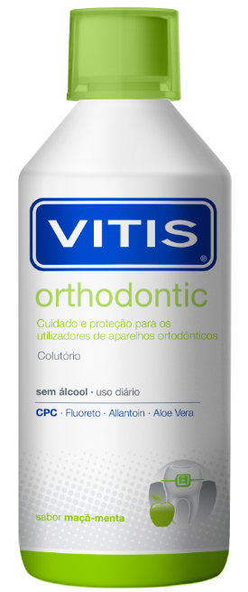 Use o cupão BEM-VINDO na primeira compra = 10% de desconto + oferta de portes O colutório VITIS Orthodontic é um produto para a higiene oral especificamente formulado para a higiene oral diária de portadores de aparelhos ortodônticos.